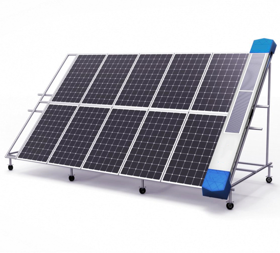 坚能光伏通过多年的自主研发和创新,融合物联网、云计算、人工智能等智能手段,成功推出光伏组件智能清洗机器人。实现光伏电站组件的自动化、智能化清洗,保障电站的发电效率。